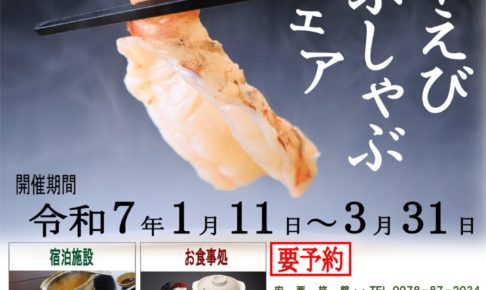 令和7年1月11日(土)~3月31日(月)の期間、姫島女将の会による「姫島車えびしゃぶしゃぶフェア」が開催中です。