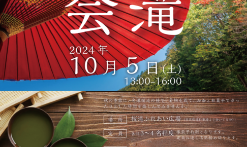 秋の季節に、名瀑桜滝の袂で、着物を着て、お茶と和菓子でゆったりとした時間を楽しんでみませんか。