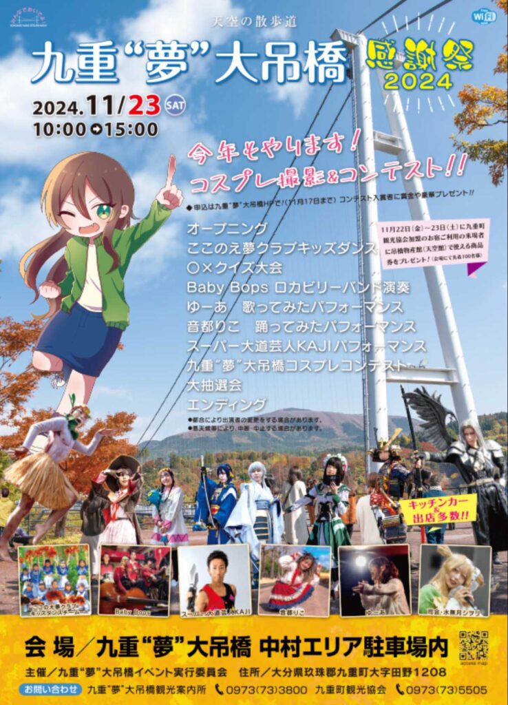 九重“夢”大吊橋では、日ごろのご愛顧に感謝を込めて「九重“夢”大吊橋 感謝祭2024」を開催いたします。