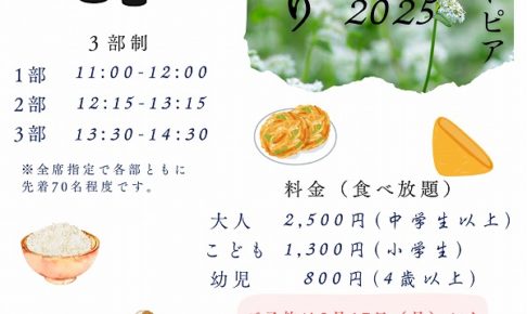 令和7年3月1日土曜日・2日日曜日 11時~14時30分(三部制)