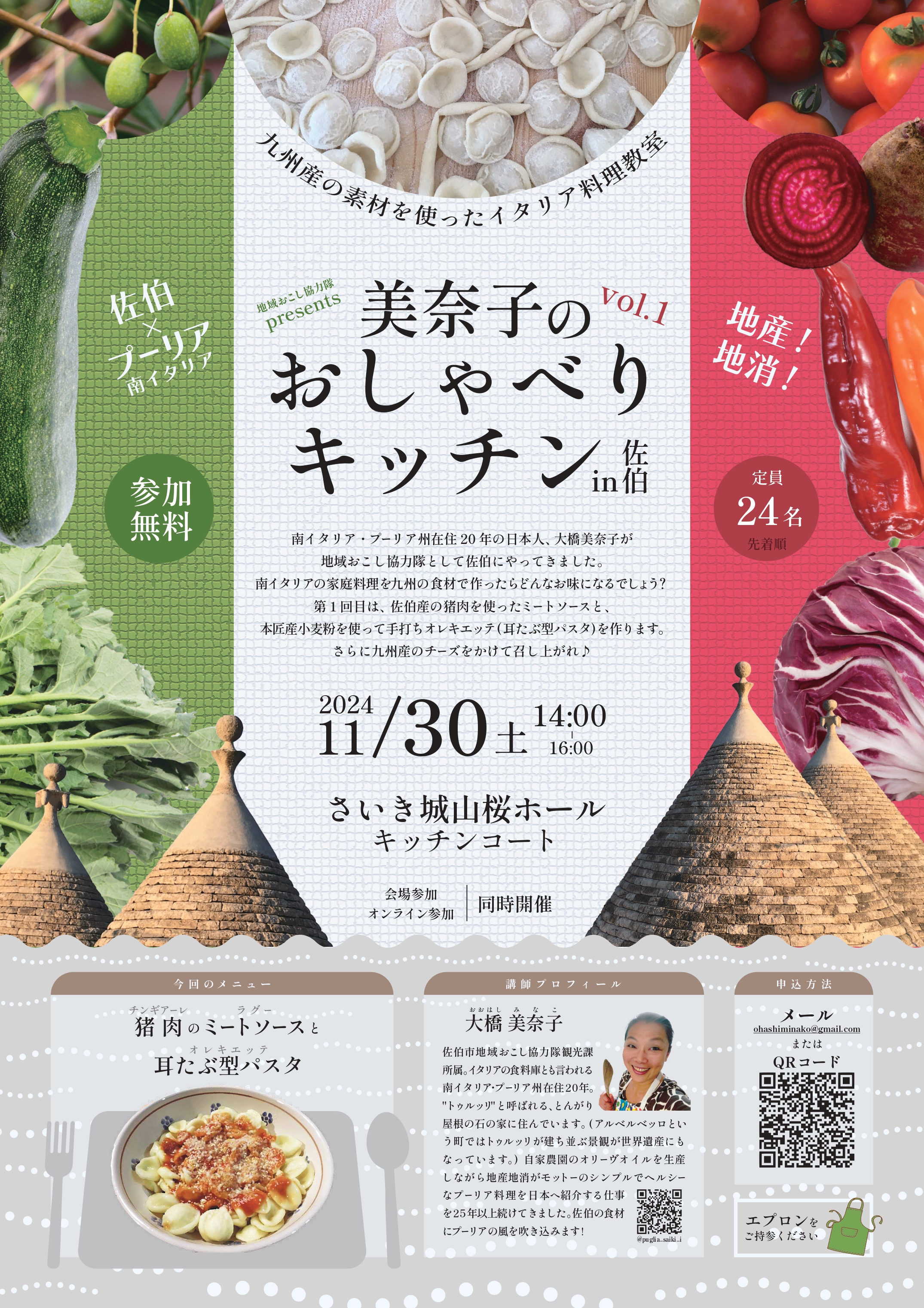 九州産の素材を使ったイタリア料理教室を開催します。