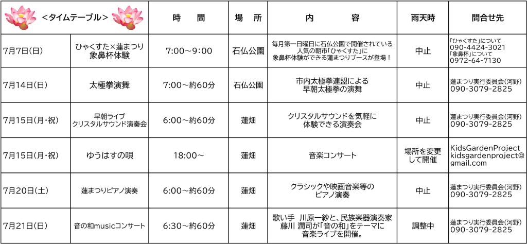 今年は、石仏公園蓮の見ごろにあわせ、石仏の里蓮まつりを開催します。