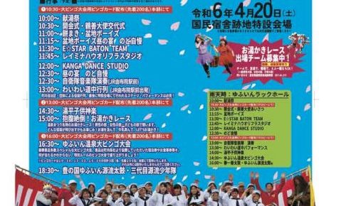 由布院温泉の豊かな恵みに感謝する「献湯祭」やお湯かきレース、伝統芸能の公演などの多彩な催しが行われます。